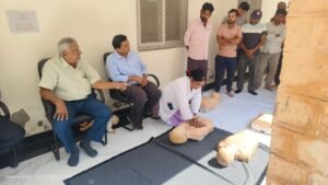 सीपीआर प्रशिक्षण सत्र का संचालन डॉ. राजेंद्र तातेड़, डॉ. सुभाष साहू और डॉ. आयुष गहलोत ने किया। उन्होंने कर्मचारियों को सीपीआर की सही विधि का डेमो देकर समझाया और उनसे जुड़ी सभी शंकाओं का समाधान किया।