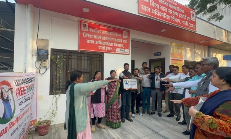 पाली : 100 दिवसीय बाल विवाह मुक्त भारत अभियान के अंतर्गत जिला कलक्टर पाली के निर्देशानुसार जिले में बाल विवाह की रोकथाम को लेकर प्रशासन ने सख्त रुख अपनाया है। अभियान के द्वितीय चरण (1 जनवरी से 31 जनवरी 2026) में विवाह से जुड़े सेवा प्रदाताओं—विवाह भवन, बैंड पार्टियां, डीजे, कैटरर्स एवं टेंट हाउस संचालकों—को जागरूक कर बाल विवाह में किसी भी प्रकार की भूमिका न निभाने का आग्रह किया जा रहा है।