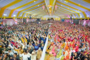 गुरुदेव ने बताया कि निराशा के उस क्षण में जब व्यक्ति ने मां से प्रश्न किया कि यदि वह साथ होतीं तो ज़मीन पर चार पैरों के निशान होते, तब मां पद्मावती ने दिव्य वाणी में कहा—“बेटा, मैंने तुझे कभी नहीं छोड़ा। जो दो पैरों के निशान दिख रहे हैं, वे तेरे नहीं, मेरे हैं। तू तो कब का चलने की शक्ति खो चुका था, इसलिए मैं ही तुझे अपनी गोद में उठाकर चला रही थी।” यह प्रसंग सुनकर पंडाल में उपस्थित श्रद्धालु भावविभोर हो उठे और मां पद्मावती की जयकारों से वातावरण गूंज उठा।
