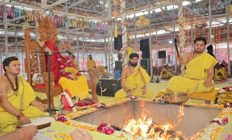 पाली : कृष्णगिरी पीठाधीश्वर जगद्गुरू वसंत विजयानंद गिरी महाराज की पावन निश्रा में आयोजित नौ दिवसीय आध्यात्मिक महामहोत्सव से समूचा पाली नगर धर्ममय वातावरण में सराबोर हो गया है। दिव्य साधना, महालक्ष्मी समृद्धि यज्ञ एवं भैरव महापुराण कथा में प्रतिदिन हजारों श्रद्धालुओं की ऐतिहासिक भीड़ उमड़ रही है, वहीं भक्त बड़ी संख्या में प्रसादी का भी लाभ ले रहे हैं।