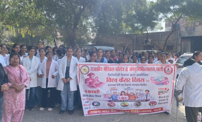 विश्व कैंसर दिवस पर पाली में जागरूकता की मिसाल, रैली, रक्तदान शिविर और विशेषज्ञ संगोष्ठी का आयोजन