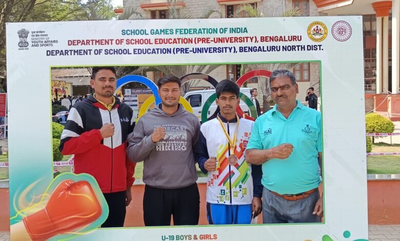 पाली : स्कूल गेम्स फेडरेशन ऑफ इंडिया के तत्वावधान में कर्नाटक के बैंगलोर स्थित सेंट क्लेरेट स्कूल में 4 से 10 फरवरी 2026 तक आयोजित 69वीं स्कूल नेशनल अंडर-19 (बालक/बालिका) बॉक्सिंग प्रतियोगिता में राजस्थान के खिलाड़ी लक्ष्य गुर्जर ने शानदार प्रदर्शन करते हुए 52 किलोग्राम भार वर्ग में कांस्य पदक जीतकर प्रदेश को गौरवान्वित किया है।