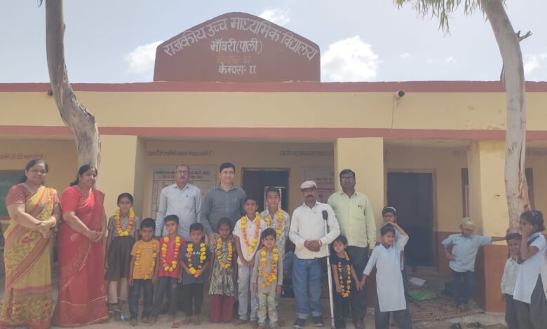 पाली : राजकीय उच्च माध्यमिक विद्यालय भांवरी में नव प्रवेश उत्सव के तहत कक्षा 1 से 5 तक के नव प्रवेशित छात्र-छात्राओं का पारंपरिक तरीके से स्वागत किया गया। विद्यालय परिसर में आयोजित इस कार्यक्रम में बच्चों का तिलक लगाकर और माला पहनाकर अभिनंदन किया गया, जिससे उनका उत्साह बढ़ा।