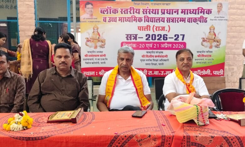 पाली : श्रीमती चीमबाई संचेती राजकीय बालिका उच्च माध्यमिक विद्यालय, पैकेज कॉलोनी में सोमवार को पाली ब्लॉक स्तरीय सत्रारंभ वाकपीठ का शुभारंभ हुआ। इस आयोजन में माध्यमिक एवं उच्च माध्यमिक स्तर के निजी और सरकारी विद्यालयों के संस्था प्रधानों ने भाग लेकर शिक्षा से जुड़े विभिन्न मुद्दों पर मंथन किया।