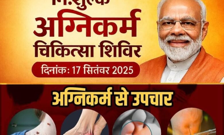 पाली : शहर में प्रधानमंत्री नरेंद्र मोदी के जन्मदिन के पावन अवसर पर एक विशेष निःशुल्क अग्निकर्म चिकित्सा शिविर का आयोजन किया जा रहा है। यह चिकित्सा शिविर 17 सितंबर 2025 को आदर्श नगर, आईमाता पार्क के पास श्री परमहंस अथर्व आयुर्धाम आयुर्वेद एवं पंचकर्म क्लिनिक में आयोजित होगा।
