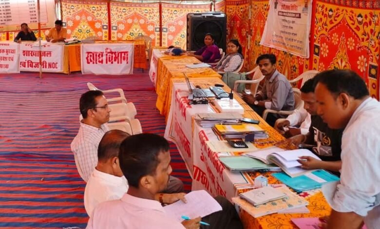 शिविर में कुल 69 पट्टों के आवेदन प्राप्त हुए, जिनमें से 1 फाइल का निस्तारण भी किया गया। वहीं, कृषि भूमि से संबंधित 2 आवेदन प्राप्त हुए, जिनमें से भी 1 फाइल का समाधान किया गया। इसके अलावा, शिविर में नागरिकों के पेंशन स्वीकृति, जन्म एवं मृत्यु प्रमाण पत्र, सफाई और स्वच्छता व्यवस्था, स्ट्रीट लाइट मरम्मत, नालियों की सफाई, पीएम आवास योजना, उज्ज्वला योजना सहित अन्य कल्याणकारी योजनाओं के कार्य संपन्न किए गए।