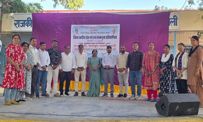 पाली : राजकीय उच्च माध्यमिक विद्यालय मानपुरा भाकरी, पाली में शुक्रवार को राजस्थान शैक्षिक अनुसंधान एवं प्रशिक्षण संस्थान (RIE), उदयपुर के तत्वावधान में जिला स्तरीय रोल प्ले एवं लोक नृत्य प्रतियोगिता का भव्य आयोजन हुआ। इस कार्यक्रम में जिले के पांच ब्लॉकों से कुल 32 प्रतिभागियों ने भाग लेकर अपनी कलात्मक प्रस्तुतियों से दर्शकों का मन मोह लिया।