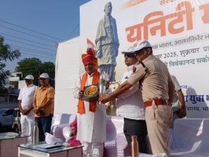 पाली : भारत सरकार के युवा कार्यक्रम एवं खेल मंत्रालय के निर्देशानुसार, जिला प्रशासन व मेरा युवा भारत पाली के संयुक्त तत्वावधान में भारत के लौह पुरुष सरदार वल्लभभाई पटेल की 150वीं जयंती के उपलक्ष्य में एकता मार्च पदयात्रा का भव्य आयोजन किया गया। कार्यक्रम की शुरुआत स्वामी विवेकानंद सर्कल पर सरदार पटेल की प्रतिमा पर अतिथियों द्वारा पुष्पांजलि अर्पित कर की गई। मुख्य अतिथि केबिनेट मंत्री जोराराम कुमावत ने युवाओं को संबोधित करते हुए कहा कि “सरदार पटेल ने जिस दृढ़ता और संकल्प से भारत को एक सूत्र में पिरोया, वह आज भी हर भारतीय के लिए प्रेरणा का स्रोत है। हमें भी उसी लौह पुरुष जैसी इच्छाशक्ति के साथ आत्मनिर्भर और विकसित भारत के निर्माण में योगदान देना चाहिए।”