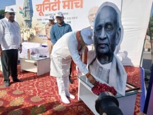मार्च के दौरान तिरंगे झंडे और संदेश पट्टिकाओं के माध्यम से सरदार पटेल के कार्यों व उनके आदर्शों को जन-जन तक पहुंचाया गया।