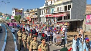 पदयात्रा महाराणा प्रताप चौक, पृथ्वीराज चौहान सर्कल, किला मैदान और नगरपालिका मार्ग से होती हुई पुनः विद्यालय परिसर में पहुँची, जहाँ कार्यक्रम का समापन हुआ। मार्च के दौरान युवाओं ने तिरंगा झंडा और एकता के नारे लगाते हुए ‘अनेकता में एकता’ का सशक्त संदेश दिया।