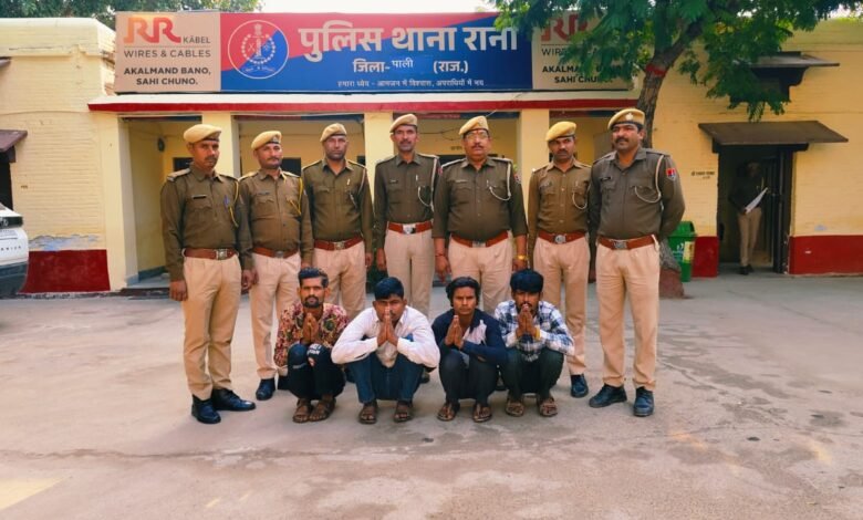 पीड़ित की शिकायत पर पुलिस ने तत्काल जांच शुरू की और आसपास लगे सीसीटीवी कैमरों की फुटेज खंगाली। फुटेज के आधार पर आरोपियों की पहचान कर पुलिस ने 27 वर्षीय कुमार पुत्र शिवा निवासी कच्ची बस्ती फालना, 35 वर्षीय दिलीप कुमार पुत्र दरियाव, 19 वर्षीय कन्हैया पुत्र मनोज और 20 वर्षीय चन्दन पुत्र पप्पू निवासी शिवाजी नगर फालना को गिरफ्तार किया।