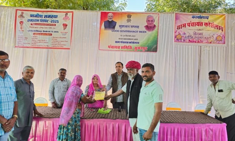 पाली : राज्य सरकार के निर्देशों पर जिलेभर में आयोजित “ग्रामीण समस्या समाधान शिविर–2025” आमजन के लिए बड़ी राहत साबित हो रहे हैं। इसी क्रम में सुमेरपुर पंचायत समिति की ग्राम पंचायत कोसेलाव में आयोजित शिविर में वर्षों से लंबित आवासीय पट्टे का समाधान मौके पर ही कर दिया गया।